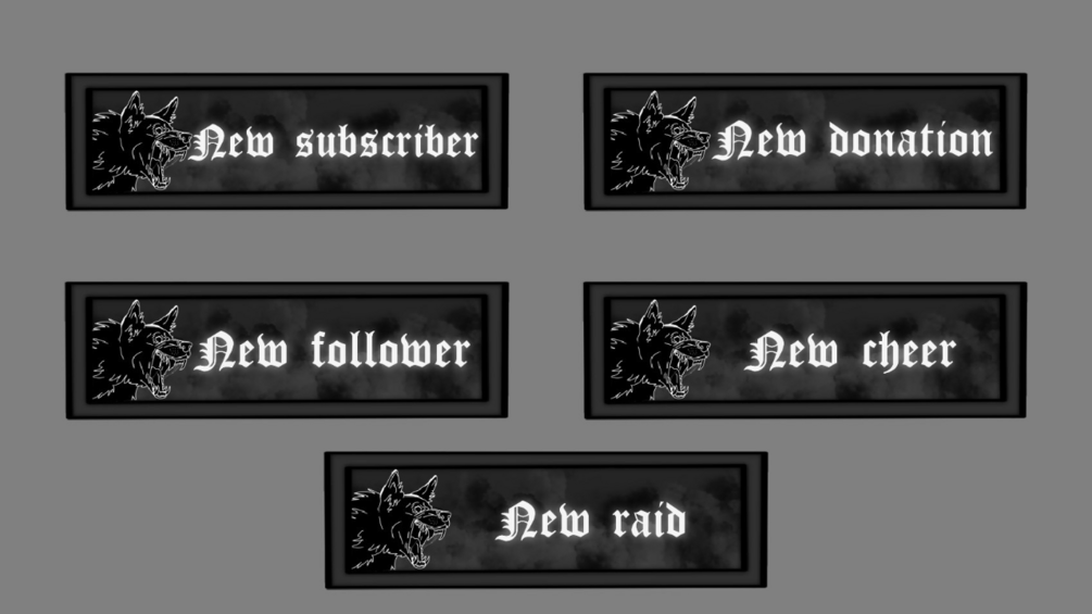 Upgrade your stream with this dark Nightfang stream overlay pack, designed for creators who want a cohesive, eye-catching look. This set is perfect for streamers who love dark, edgy, minimal styles and want their stream to feel polished and on-brand.